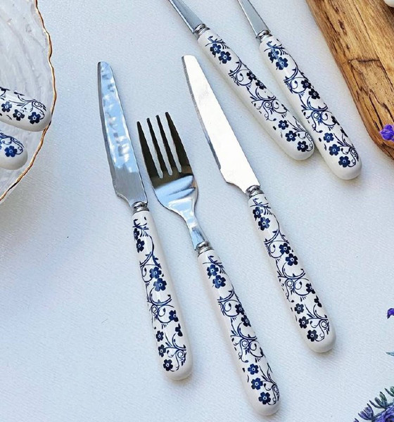 ست کارد چنگال گل آبی گزینهای مناسب برای هدیه یا جهیزیه است بهدلیل ترکیب زیبایی و کاربردی بودن.